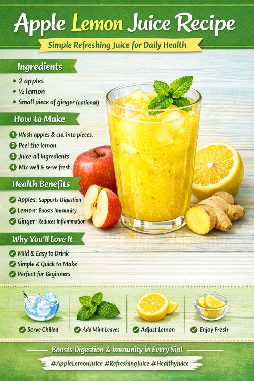 7juice is a healthy juice and smoothie recipe blog that focuses on natural nutrition, detox drinks, and daily wellness. In this post, 7juice introduces 5 healthy spring juice recipes that help boost energy and strengthen immunity.Apple lemon juice is one of the simplest and most refreshing homemade juices you can enjoy daily.